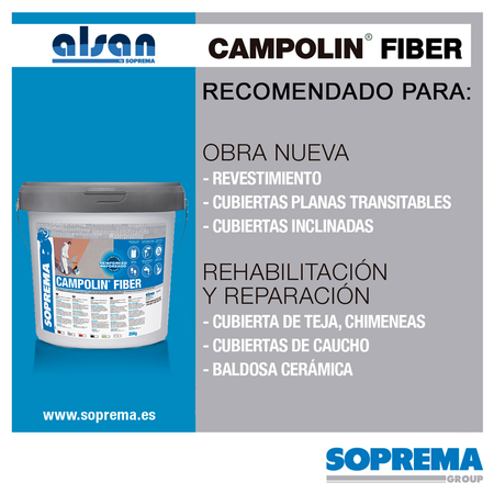 Campolin® Fiber es una resina acrílica de alta densidad, que forma una membrana elástica impermeable, con fibras de refuerzo. Una característica diferenciadora de este tipo de impermeabilizaciones líquidas base agua es su ausencia de disolventes, lo que las convierten en productos sostenibles, los cuales desde Soprema identificamos bajo nuestra insignia de Eco-struction.