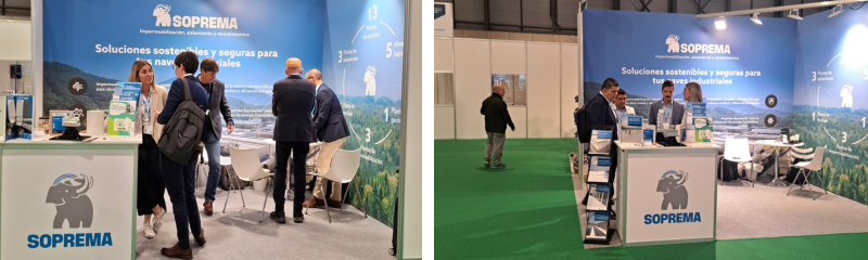 En nuestro espacio, los visitantes pudieron explorar ejemplos reales de aplicación, ver el sistema Soprasolar® instalado sobre distintos soportes (bituminoso, TPO y PVC), y descubrir casos de éxito y soluciones técnicas adaptadas a diferentes tipos de cubiertas.