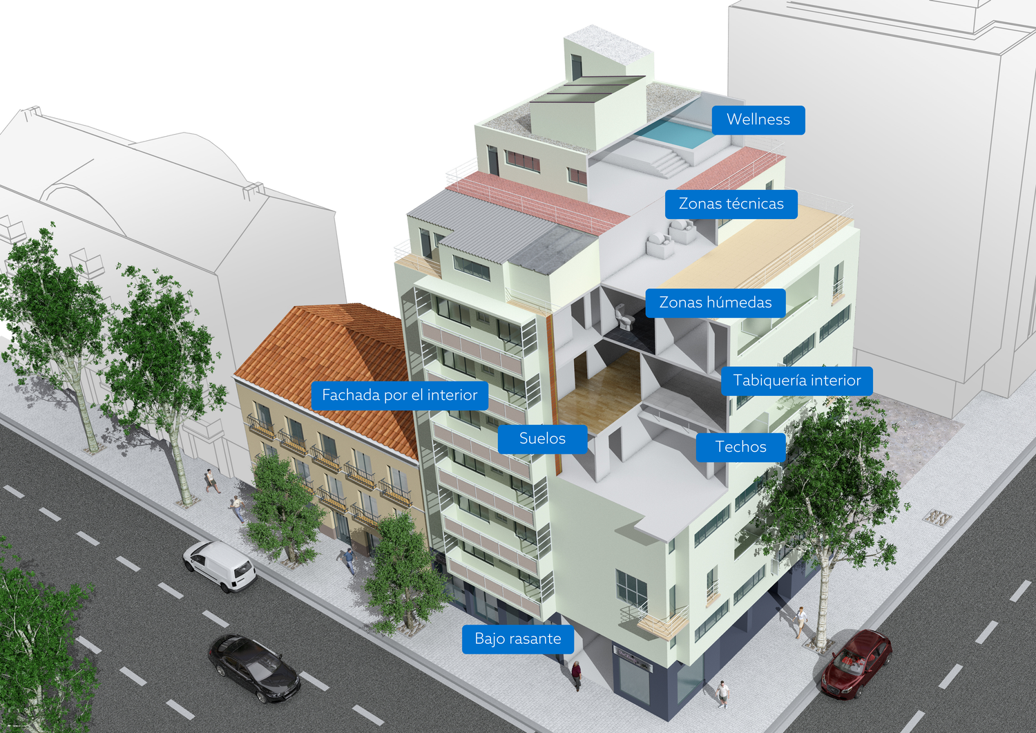 De este modo, facilitamos la correcta prescripción e instalación de nuestras soluciones en proyectos de rehabilitación interior.
