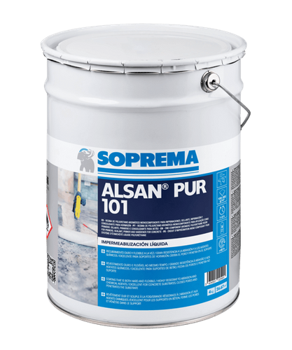 - Alsan® Pur 101 se usa en sistemas de impermeabilización líquida de poliuretano sobre soportes de hormigón a los que cierra el poro, penetrando en el soporte.