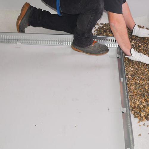 La Banda Paragravilla para lámina sintética tiene la función de asegurar la separación y retención de grava de techos-terrazas verdes en áreas estériles. Puede ser utilizada tanto en membranas de TPO como en membranas de PVC. La unión entre dos Bandas Paragravilla para lámina sintética se realiza mediante superposición. Para asegurar un posicionamiento preciso, las bandas cuentan con cortes que permiten la colocación de tiras de membrana para soldar sobre la superficie, con un intervalo de 33 cm.