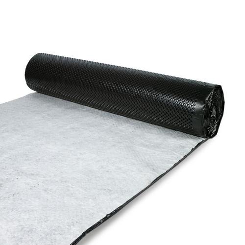 • El geotextil actúa como filtro del agua, garantizando el drenaje y permitiendo que los nódulos de polietileno conduzcan y evacuen el agua. El sistema completo funciona como drenaje del agua, y protección de la impermeabilización del muro.