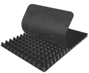 - Extender el Drentex Impact 100 sobre la impermeabilización, previa capa separadora tipo ROOFTEX V o TEXXAM, de modo que los nódulos de la membrana de poliestireno queden hacia arriba, para la captación de agua. Sirve de referencia el geotextil, que es de color negro, va en la cara superior.