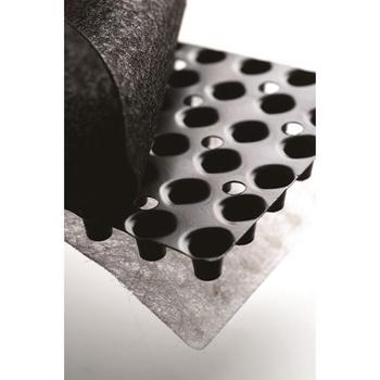 • Las membranas Drentex Impact compuesta por una estructura tridimensional (en forma de nódulos) de poliestireno garantizan una constante y gran capacidad de drenaje a lo largo del tiempo, por su altísima resistencia a la compresión y su casi nula deformación.
