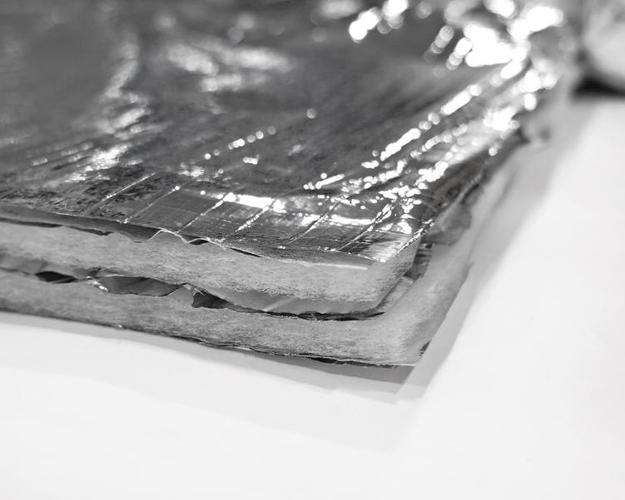 Es un aislamiento térmico reflexivo de un total de 11 capas: 2 láminas metalizadas reforzadas, 2 capas de guata de poliéster, 4 láminas metalizadas y 3 láminas separadoras sintéticas.