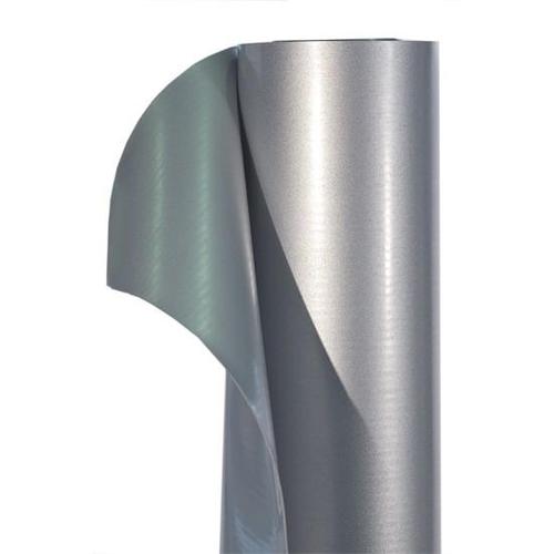 Producida con un recubrimiento posterior de compuesto de partículas poliméricas de aluminio incrustadas en la superficie de la membrana que le da las características estéticas y larga duración similar a una hoja flexible de aluminio.