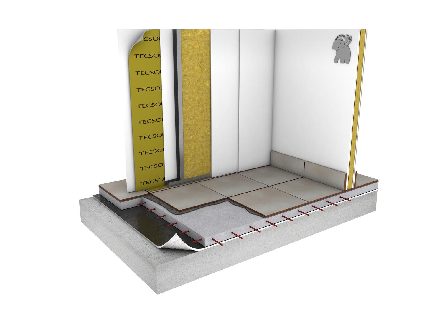 Sistema para el aislamiento acústico de suelos en primeros forjados, entre vivienda y garaje o locales comerciales. La instalación del complejo insonorizante TECSOUND® FT 75 permite obtener un buen nivel de aislamiento acústico tanto a ruido aéreo como a ruido de impacto. Sistema también recomendado para locales en los que pueda haber reproducción de música o música en directo sin amplificar.