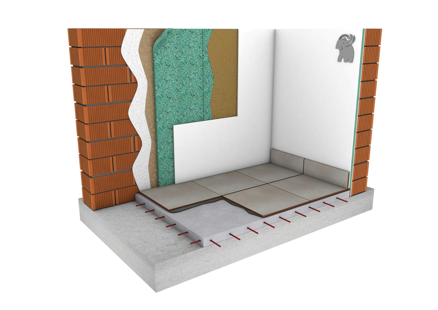 - El uso de la BANDA DE DESOLIDARIZACIÓN TEXFON complementa el sistema asegurando la eficiencia del aislamiento acústico, con la desolidarización del suelo con los paramentos verticales.